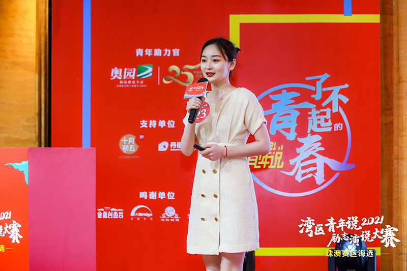 在4月17日舉行的珠澳賽區(qū)海選上,80名選手圍繞社會(huì)實(shí)踐、青春夢(mèng)想、社會(huì)價(jià)值觀等進(jìn)行TED式脫稿演說(shuō)。參賽者的年齡從20歲到40歲不等,他們的身份也跨越職場(chǎng)人士、講解員、自媒體、教師、學(xué)生等各個(gè)領(lǐng)域。風(fēng)華正茂的他們,都在灣區(qū)的建設(shè)和發(fā)展中奮進(jìn)勃發(fā)、不斷前行。