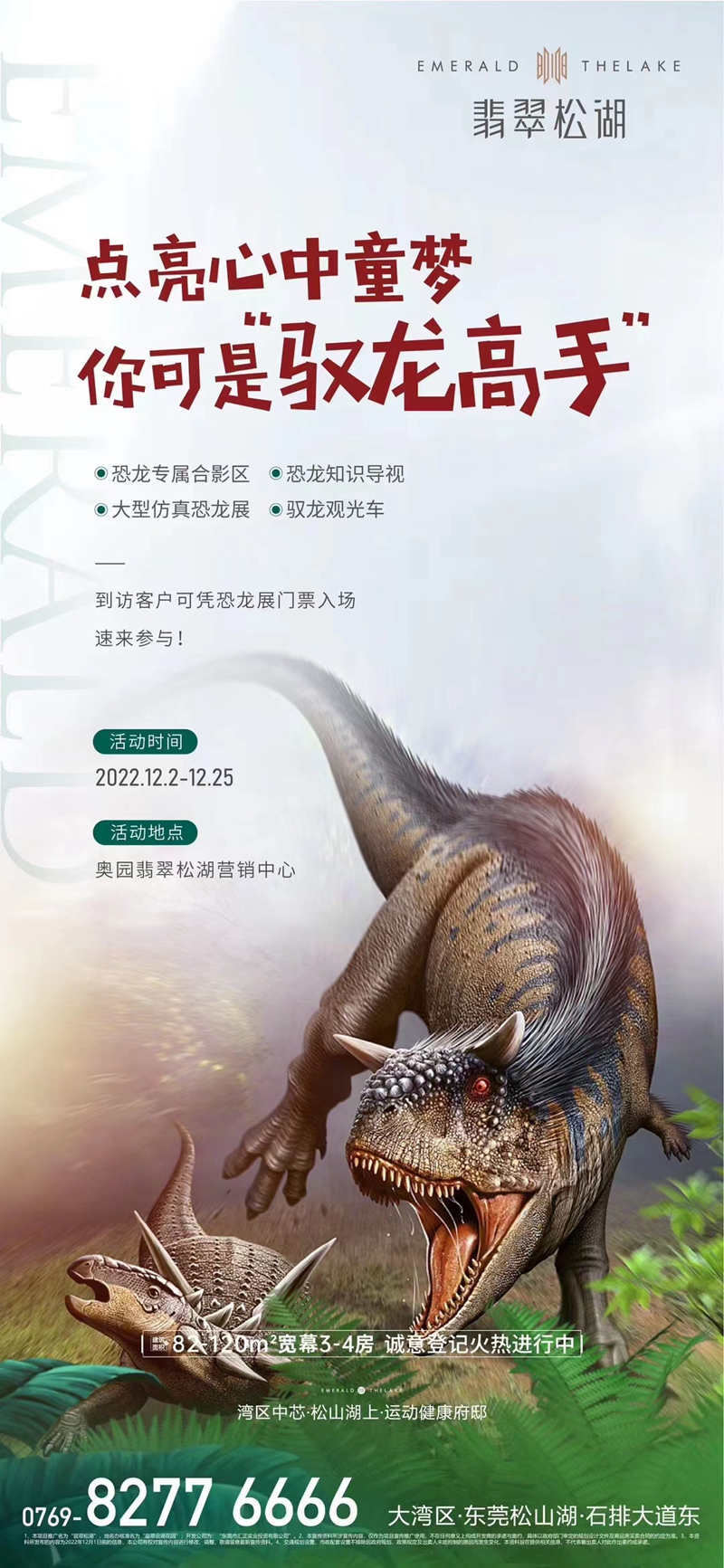 目前,翡翠松湖項(xiàng)目正誠意登記中。12月2日至25日到訪,還可以現(xiàn)場參觀大型“奇幻恐龍展,探秘侏羅紀(jì)”展覽。期間,現(xiàn)場還會設(shè)置專屬科普知識,更有激萌恐龍拍照打卡點(diǎn),體驗(yàn)與龍仔一起破殼而出,期待與您共鑒神秘奇遇。