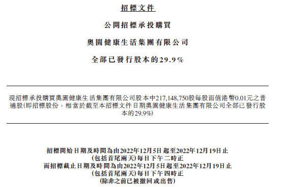 招標(biāo)文件—公開招標(biāo)承投購買 奧園健康生活集團(tuán)有限公司 全部已發(fā)行股本的29.9%